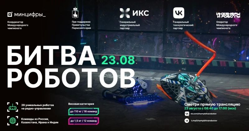 23 августа 2025 года состоится первый отборочный этап Международного чемпионата по битве роботов.