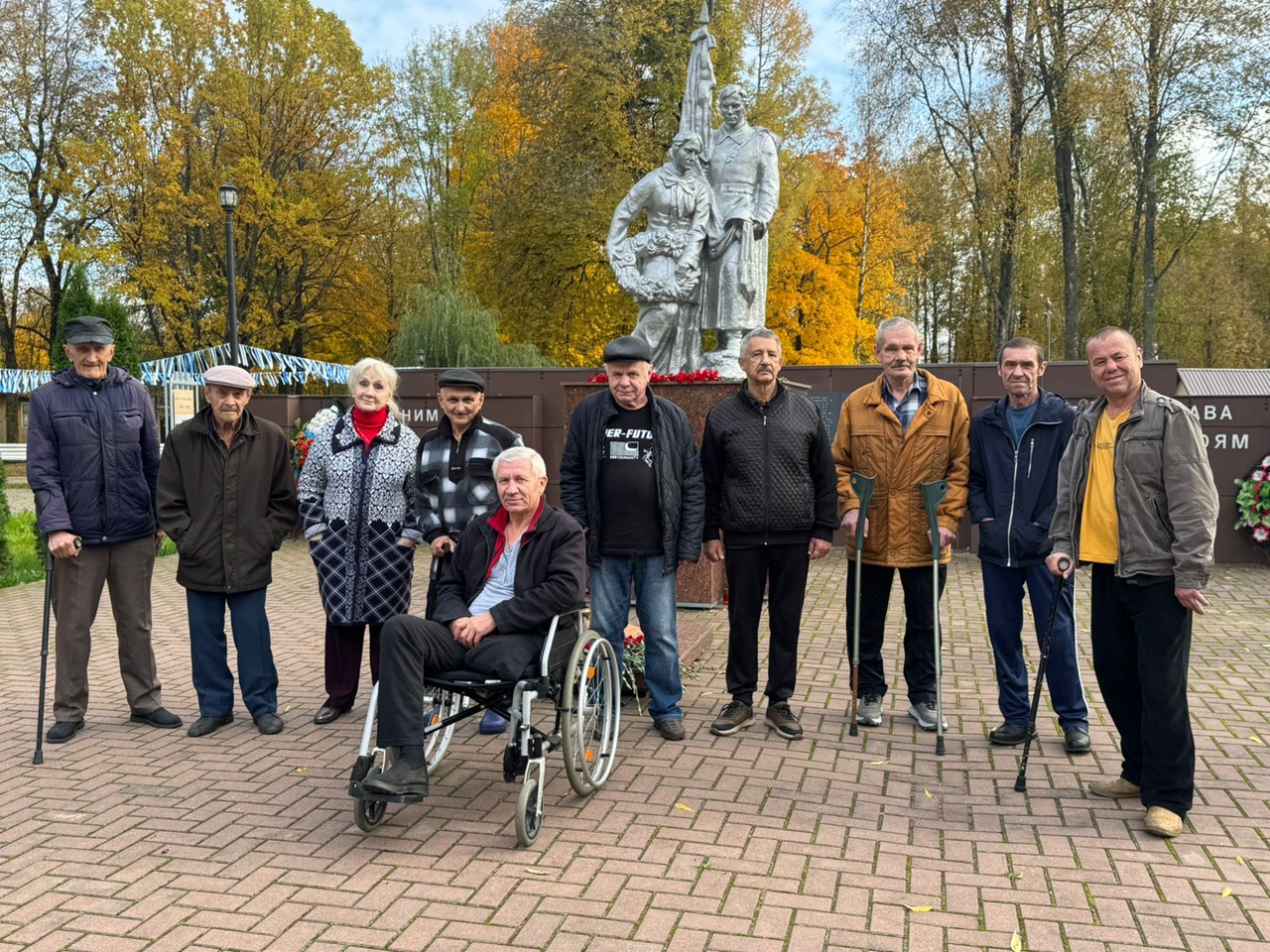 В эти золотые дни группа получателей социальных услуг Кардымовского дома-интерната для престарелых и инвалидов отправилась на прогулку в центральный парк посёлка Кардымово.
