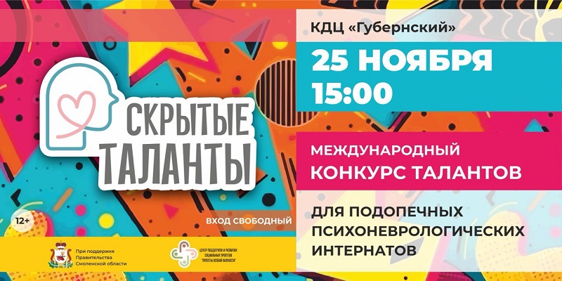 Международный конкурс талантов для подопечных психоневрологических интернатов «Скрытые таланты»организован АНО «Проекты особой важности»при поддержке Правительства Смоленской области.